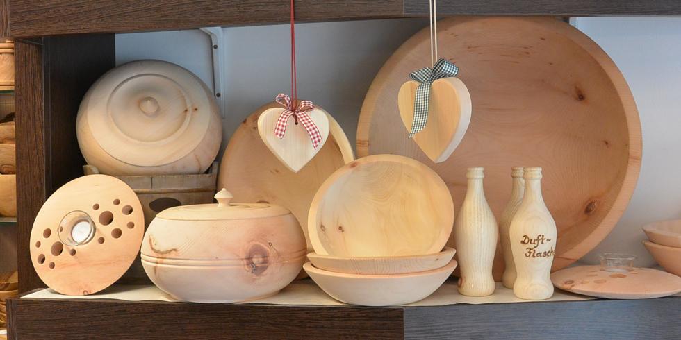 Zirbenschalen, Brotdosen aus Zirbe, Stöpsel & Kugeln für Karaffen, Zirbenherzen, Zirbenkissen, Öle zum Auffrischen uvm.