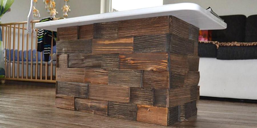 Das "Tiroler-Spaltholz" ist für den Innengebrauch geeignet. Die aus Fichtenholz hergestellten Elemente sind einfach in der Verarbeitung und bringen in jedem Raum ein wohlig-warmes Raumbild.