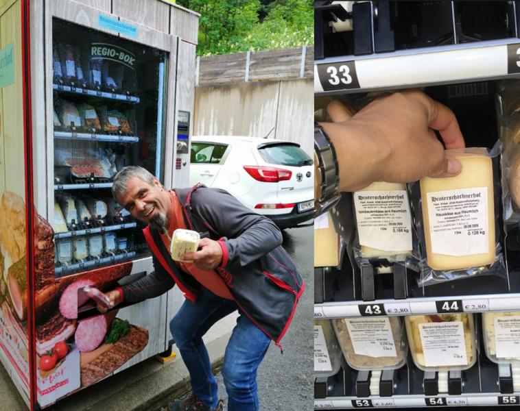 In Gränzing steht am Niederndorferberg der erste Verkaufsautomat für Lebensmittel mit den Produkten Wurst, Speck und Käse.
