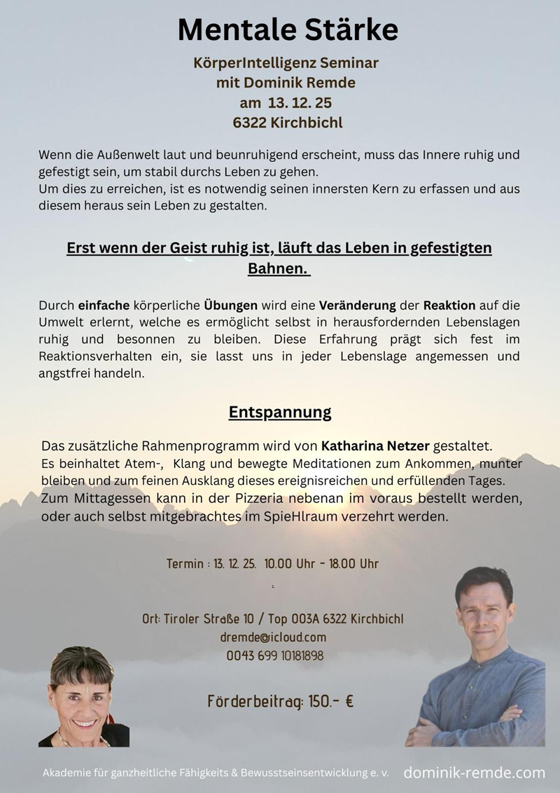 | Veranstaltungsort: | 6322 Kirchbichl, Tiroler Straße 10 / Top 003A |