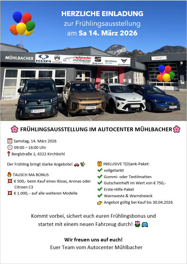 | Veranstalter: | AUTOCENTER MÜHLBACHER Autohaus Werkstatt Kirchbichl Tirol |