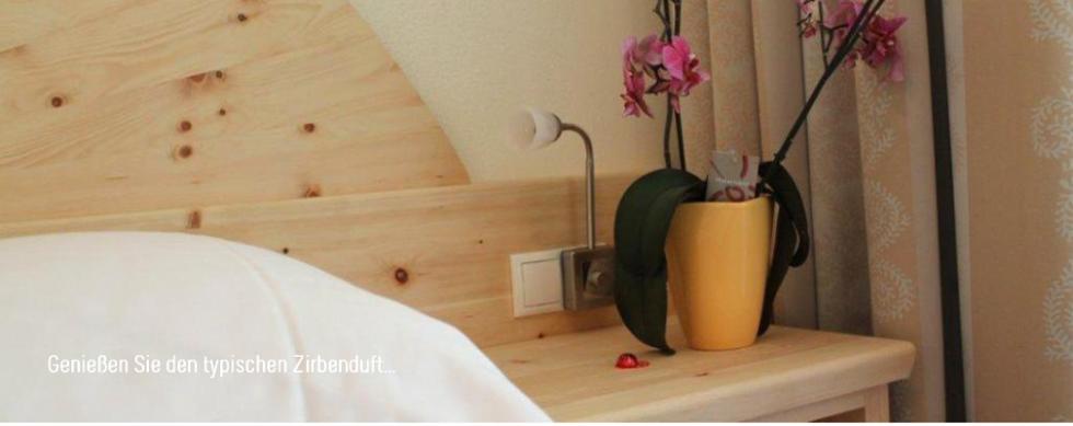 BuchungsanfrageDiese beiden schönen Zimmer im Neubau sind komplett mit reinem Zirbenholz ausgestattet. Die Zirbenkiefer ist bekannt als Königin der Hölzer. Sie wächst sehr langsam in hohen Lagen - dadurch entwickelt sie ihren charakteristischen Duft. Zirbenholz regeneriert den Herzschlag und den Kreislauf, und sorgt für entspannten und heilsamen Schlaf.
