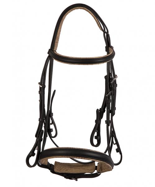Ein spezielles Zaumzeug, das für das Reiten mit einer Kandare verwendet wird. Eine Kandare besteht aus zwei Gebissen: der Unterlegtrense und der Kandarenstange. Der Kandarenzaum hat daher zusätzliche Riemen und Befestigungsmöglichkeiten für beide Gebisse.