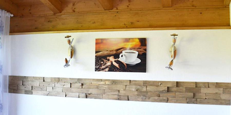 Das "Tiroler-Spaltholz" ist für den Innengebrauch geeignet. Die aus Fichtenholz hergestellten Elemente sind einfach in der Verarbeitung und bringen in jedem Raum ein wohlig-warmes Raumbild.