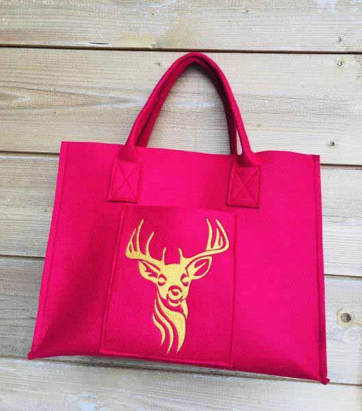 Filztasche rot mit Stickerei 'Hirsch'