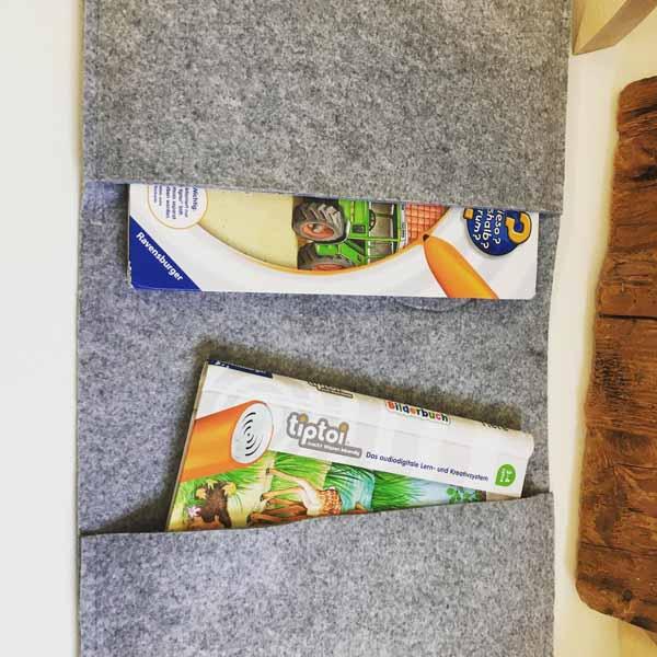 Sie findet Stauraum für mehrere Bücher und den TipToi Stift.
