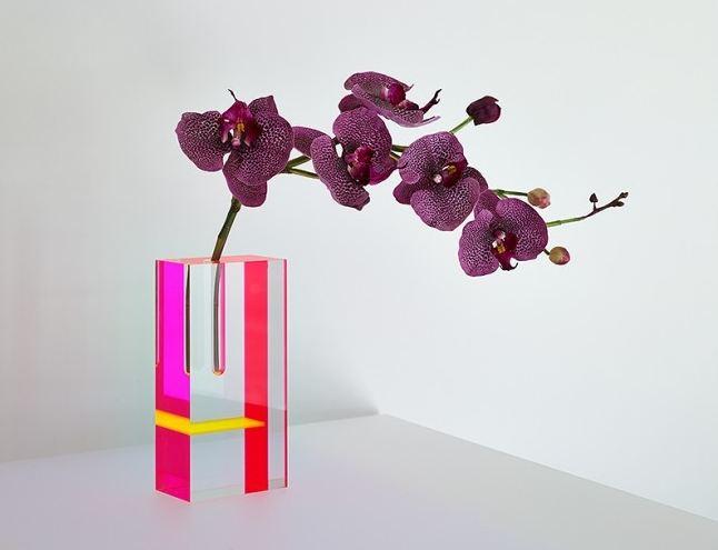 Plexiglasvase aus klaren und färbigen Plexiglas verklebt