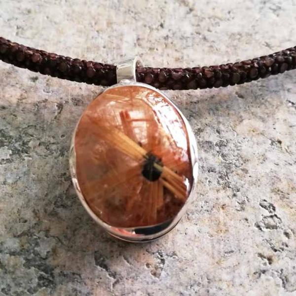 Goldrutil Anhänger Rarität Sternrutil Quarz in 925 Silber