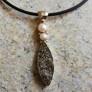 Pyrit Anhänger mit Zuchtperle in 925 Silber