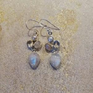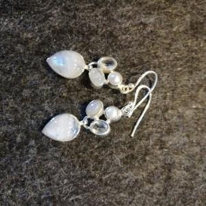 Mondstein Ohrringe mit Zuchtperle in 925 Silber