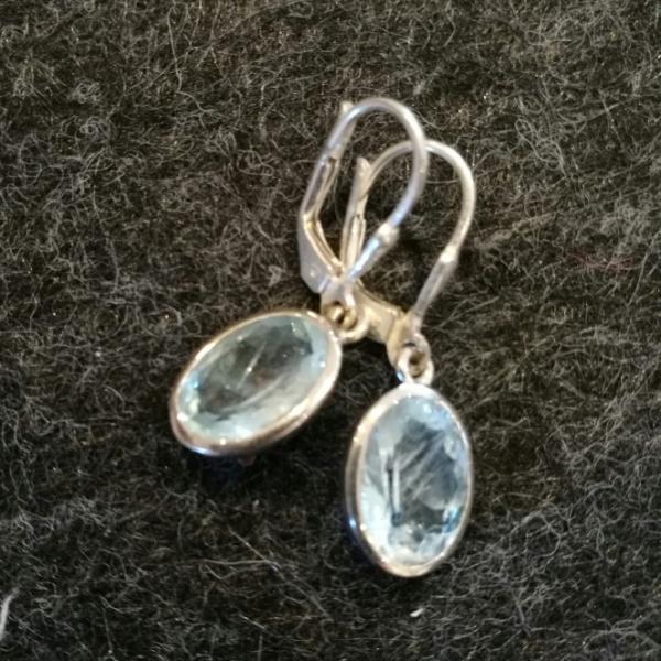 Aquamarin Ohrringe facettiert oval mit 925 Silber