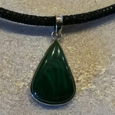 Malachit Anhänger in 925 Silber Tropfen Gr. M