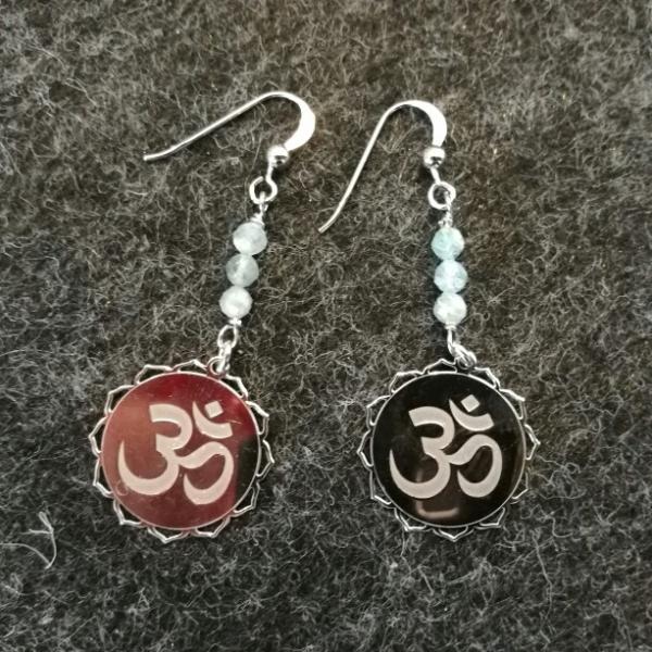 Aquamarin mit Om Zeichen Ohrringe 925 Silber