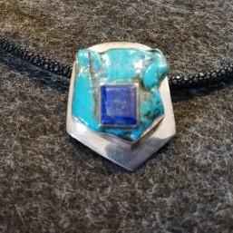 Echter Türkis mit Lapislazuli Anhänger in 925 Silber eingefasst