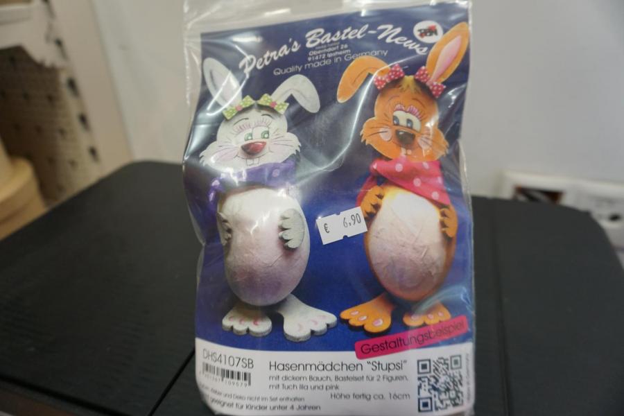 Hasenmädchen "Stupsi" mit dickem Bauch, mit Tuch lila und pink