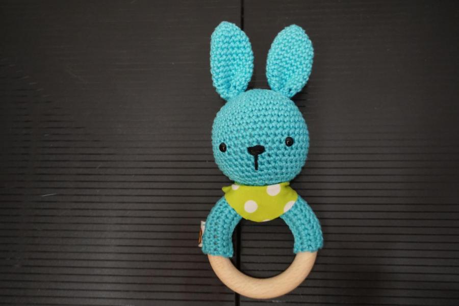 Greifling Hase mit Rassel und Knisterohren - Türkis