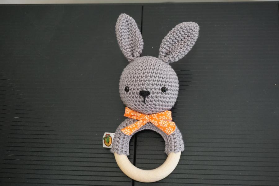 Greifling Hase mit Rassel und Knisterohren - Dunkelgrau