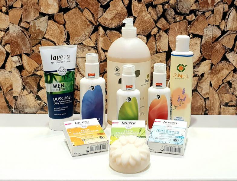 der Firmen Sanoll (Österreich), Lenz, Lavera, Savon Du Midi (Seifen), Speick, Natracare und besonders hervorzuheben die sensationellen DEMETER Produkte von Martina Gebhardt!