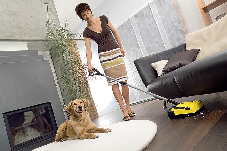 ... ideal zur Zwischendurchreinigung aller Bodenbeläge. Mit schneller Bürstenentnahmetechnik, teleskopierbarem Stiel, wechselbarem Akku und Tierhaarbürste.