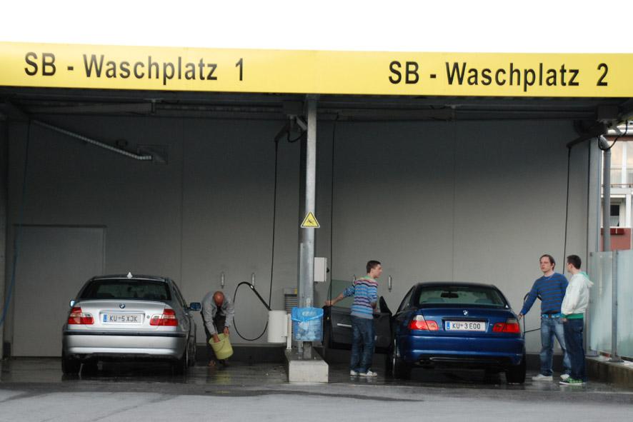 In den zwei SB-Waschplätzen können Sie Ihr Fahrzeug manuell reinigen.