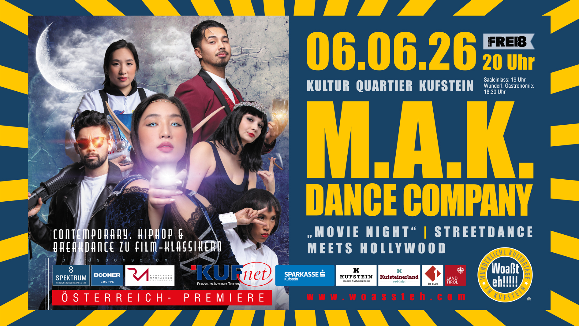 Mit ihrer Showpremiere Free Vivaldi – Four Seasons meet Streetdance eroberte die M.A.K. Company die Bühnen – nun kommt ihr zweites Programm: In Movie Nights nehmen die ausgezeichneten Tänzerinnen und Tänzer ihr Publikum mit auf eine wunderbare Zeitreise durch Hollywood.