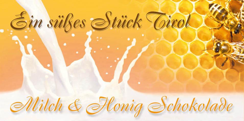 Milch & Honig Schokolade (40% Kakaoanteil) - mit Tiroler Alpenmilch - Füllung: Mandeln, Honig und Blütenpollen aus kontr. biologischen Anbau