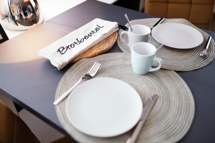 Ausstattung: Mikro-Back-Grill, Nespresso Kaffeemaschine, Wasserkocher, 2 Kochplatten mit Induktion, Dunstabzug, Kühlschrank mit Tiefkühlfach, Geschirrspüler, Geschirr für 2 Personen
