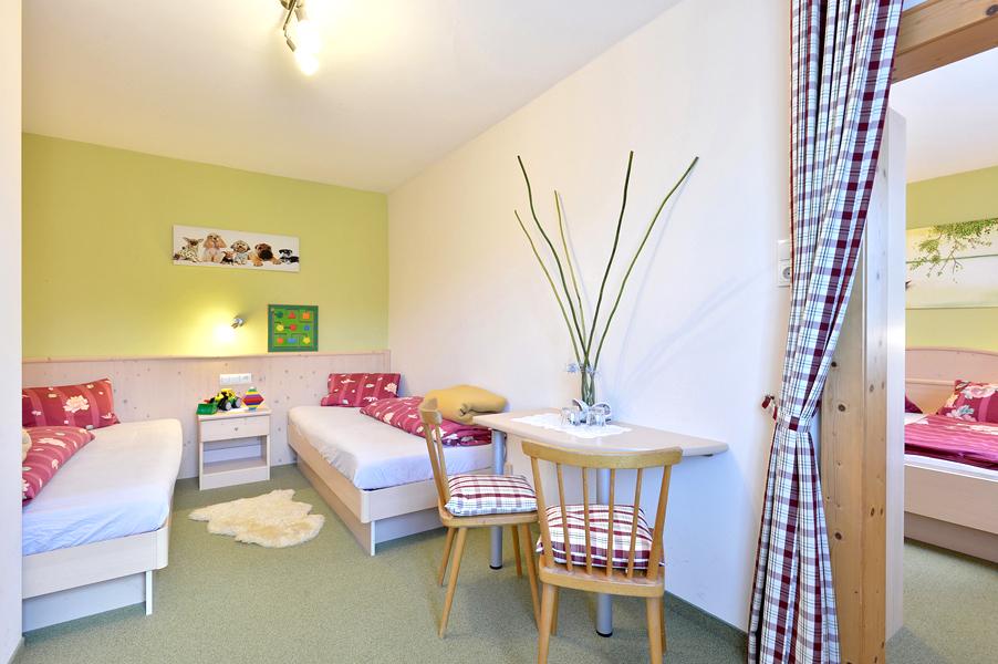 Unser Bauernhof verfügt über 2 schöne große Familien Zimmer, geeignet für 2 Erwachsene und 2 Kinder, die auch als Doppelzimmer buchbar sind. Ein weiteres Doppelzimmer mit Du und Wc