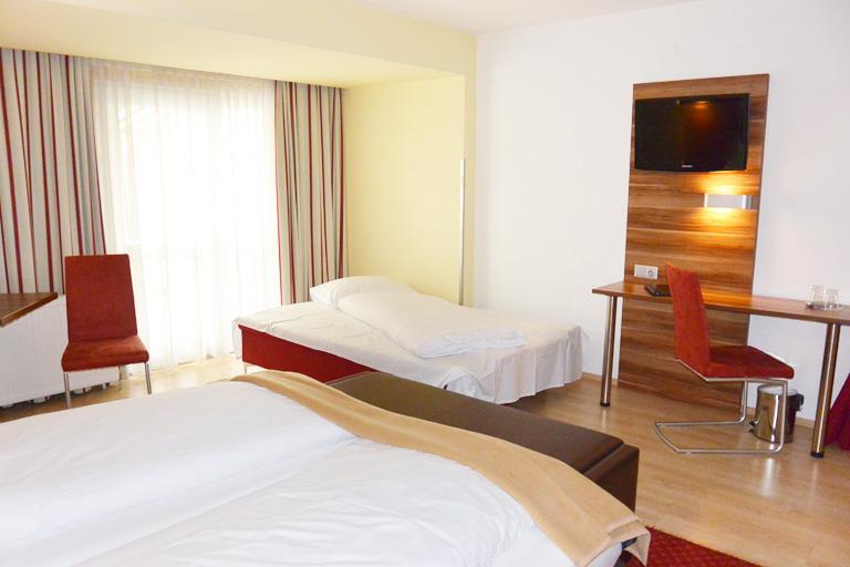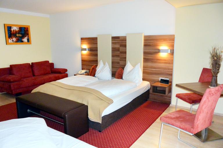 Komplett renoviert, ca. 30-34 m², ausgestattet mit Parkett- und Teppichboden, Bad (Wanne/WC, Föhn, Kosmetikspiegel), SAT- TV (Flachbildfernseher), Telefon, Safe, Radiowecker und WLAN (gratis!), mit komfortablem Schlafsofa für 3. Person, Miniküche (mit Mikrowelle und Kühlschrank) und Balkon