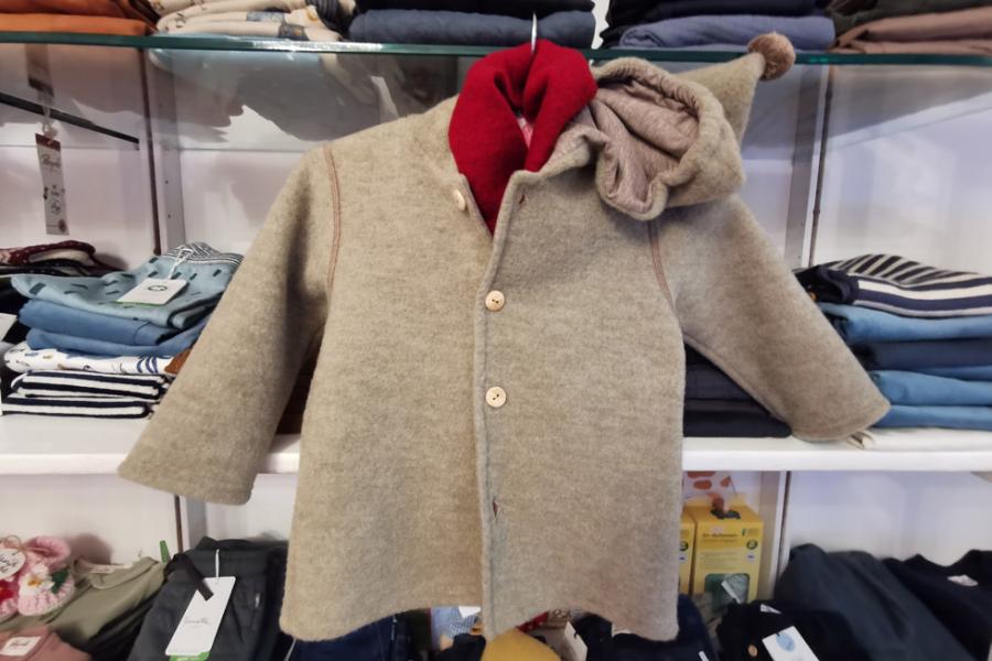 Die Kleidung besteht aus hochwertigen Naturmaterialien wie Bio-Baumwolle, Wolle und Wolle/Seide.