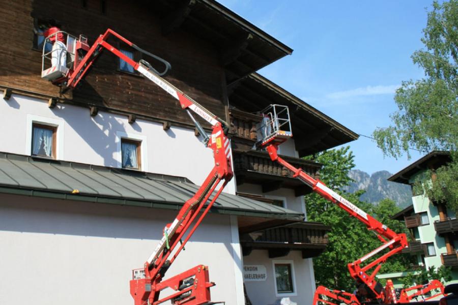 Mit den Abmessungen von nur 88 x 198 cm kommen unsere Arbeitsbühnen fast durch jede Tür und erreichen trotzdem eine Arbeitshöhe von 14 bzw. 19 Metern bei einer seitlichen Reichweite von 11,5 Meter. Durch den hydraulischen Raupenantrieb und dem Verbrennungsmotor stehen einem auch abseits von Steckdosen alle Möglichkeiten offen. Und im Innenraum schalten wir einfach auf den Elektromotor um.