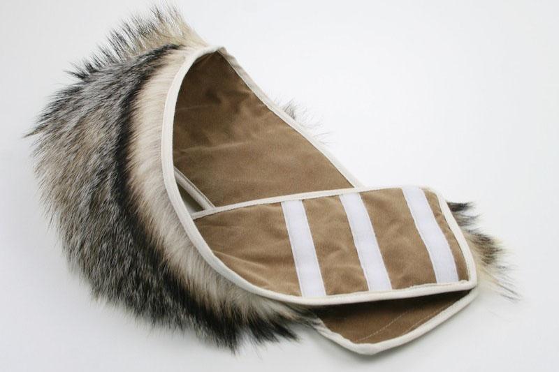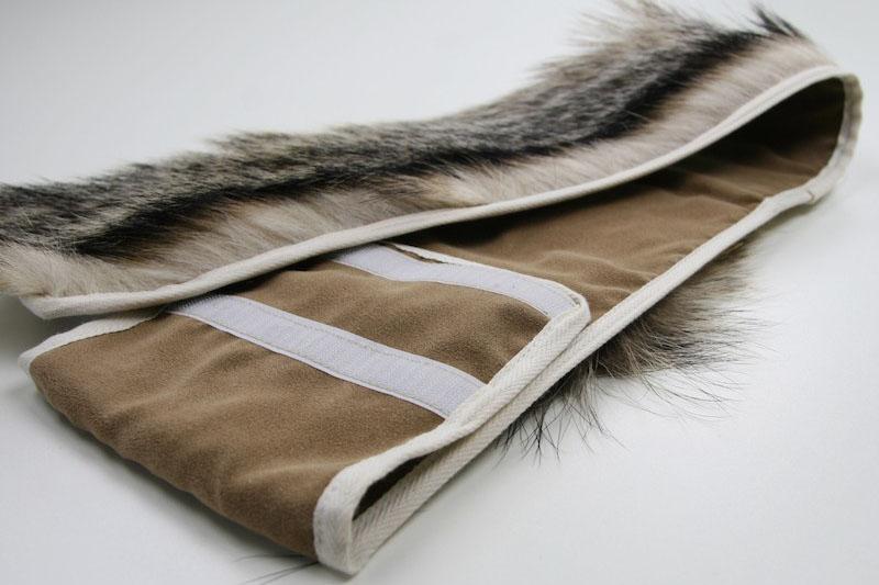 Die Dachsfellgürtel bestehen aus 100% Baumwolle, sind gefüttert, ca. 15 cm breit und haben einen Klettverschluss.