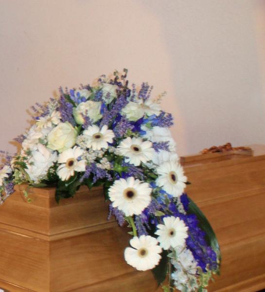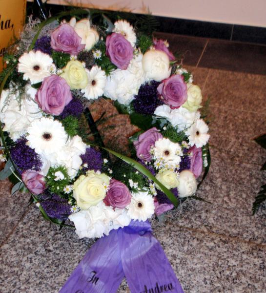 Trauerkränze & Gestecke in BLAU FLIEDER WEISS