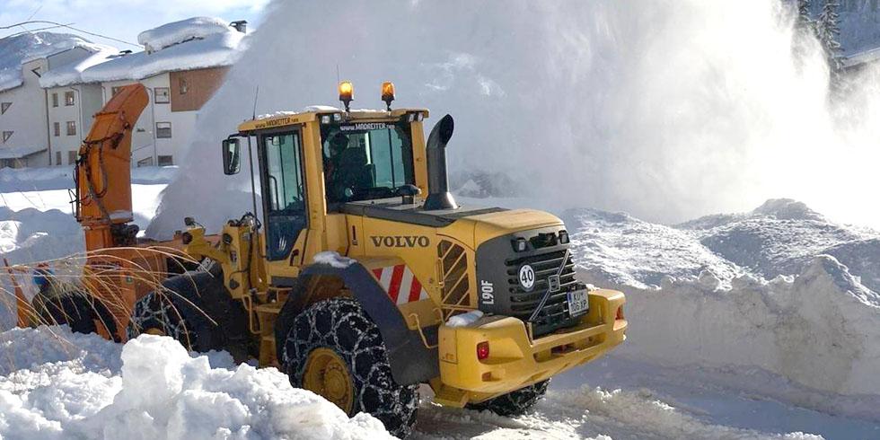 Ausgerüstet mit Schneepflügen und Salzstreuern sowie einer Schneefräse, einem LKW 4-Achser, einem Traktor mit Muldenkipper und zwei Radlader, sorgen wir für eine schnelle Räumung von Schnee auf Parkplätzen und Straßen, für die wir die Verantwortung tragen.