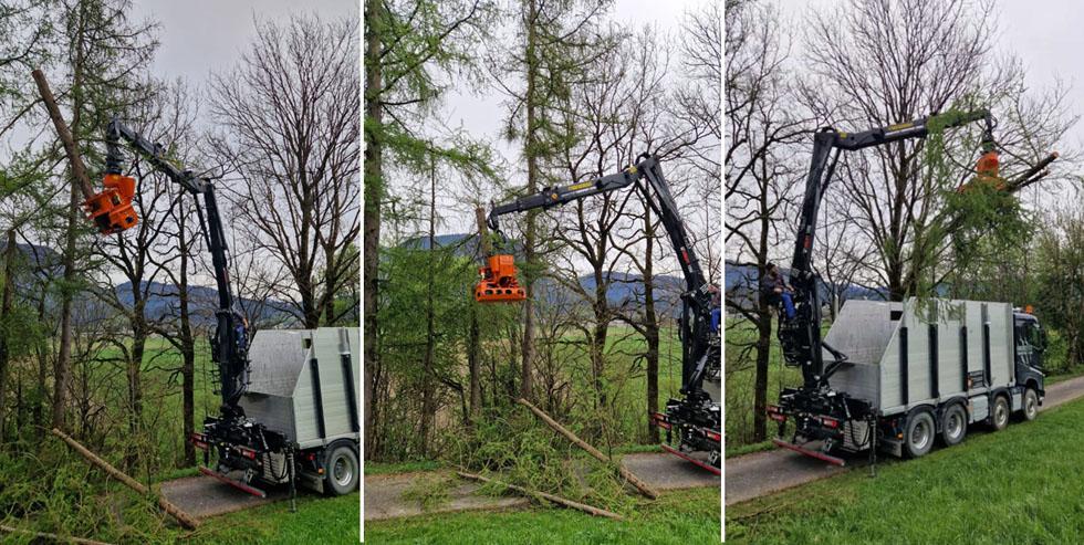 Neu in unserem Maschinenpark dazubekommen haben wir eine Greifersäge als Anbaugerät für unseren Kran.