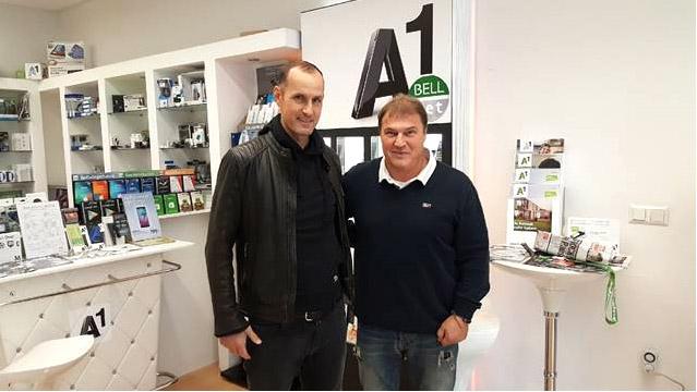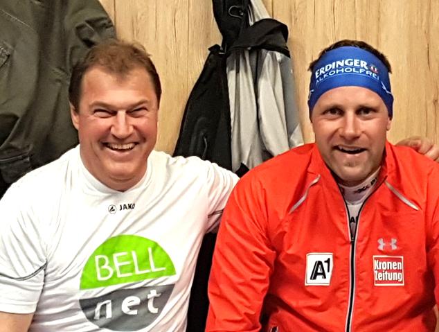 links Skiass Romed Baumann und rechts ehem. Nationalspieler Roli Kirchler