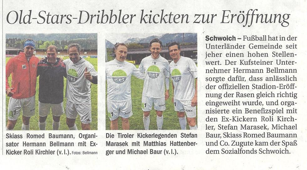 Der österr. Schistar Romed Baumann und viele ehemalige Fußballnational Spieler und Bundesliga Spieler, spielen mit A1 Team Bellnet für einen guten Zweck (Roland Kirchler, michael Baur, Stefan Marasek, Matthias Hattenberger, Marko Unterrainer uvm