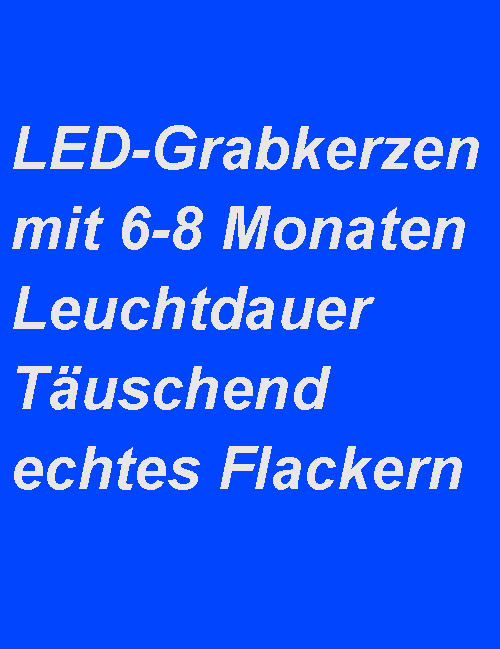Verleihen Sie der Ruhestätte Ihrer Liebsten ein würdevolles Licht. Unsere innovativen LED-Grabkerzen sehen der natürlichen Flamme ähnlich und bieten eine beeindruckende Leuchtdauer von 6 bis zu 8 Monaten! Einfache Aktivierung: Einmaliges Entfernen eines Sicherungsstiftes genügt.