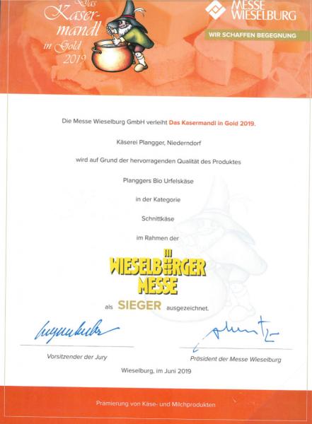 Unser Laden: Montag bis Freitag von 8 bis 18 Uhr, Samstag von 8.00 -12.30 UhrPlanggers Bio Urfelskäse - in der Kategorie Schnittkäse - Auszeichnung als PDF öffnen