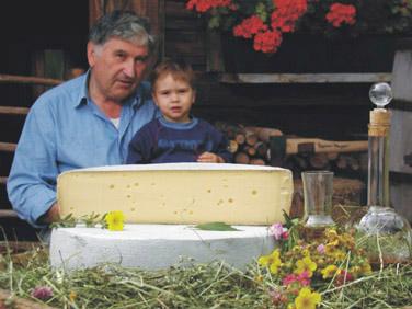 Unser Laden: Montag bis Freitag von 8 bis 18 Uhr, Samstag von 8.00 -12.30 UhrMit dem Boden fängt nämlich alles an, wenn er gesund ist und gutes Futter für die Kühe auf ihm wachsen, wird auch die Milch der Kühe gut, und somit letztendlich auch der Käse, der aus dieser Milch hergestellt wird. Und so ist es Herrn Plangger ein großes Anliegen, dass die Wiesen und Weiden nicht mit zuviel Gülle „misshandelt“ werden, denn dann stinkt und fault der Boden und die Milch kann nicht optimal werden. Wenn die Flora „stimmt“, wachsen genau die richtigen Kräuter und Gräser, die die Kühe dazu bringen, dass sie ungefähr 65 mal wiederkäuen, was zu einer bestmöglichen Verdauung des Futters führt. Dann sind die Kühe gesund, und –Zitat Herr Plangger- „Gesundheit ist viel ansteckender als Krankheit“, denn Krankheit muss man provozieren, während Gesundheit bei richtiger Düngung der Böden schon von vornherein gegeben ist. Eine hohe Milchleistung ist bei gesunden Kühen natürlich besser möglich, und das kommt schließlich dem Konsumenten zugute. Es versteht sich von selbst, dass die Käserei Plangger nur „Heumilch“ verwendet, das ist Milch von Kühen, die ausschließlich Gras, Kräuter und Heu fressen und niemals Silofutter erhalten. Die Vielfalt der Pflanzenarten ist für die Qualität der Heumilch natürlich wichtig: auf gesundem Grünland wachsen 50 bis 60 verschiedene Gräser wie Rotklee, Steinklee, Wicken, Kerbel oder Schafgarbe.