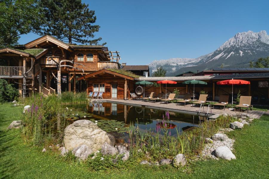 in der Saison - täglich geöffnetDas neu renovierte Gartenhotel FLORA befindet sich, umgeben von einem herrlichen Garten mit einem Schwimmteich, einer großen Holzterrasse, einer Spiel- und Liegewiese, direkt am Ortsrand in ruhiger, jedoch sehr zentraler Lage von Ellmau.
