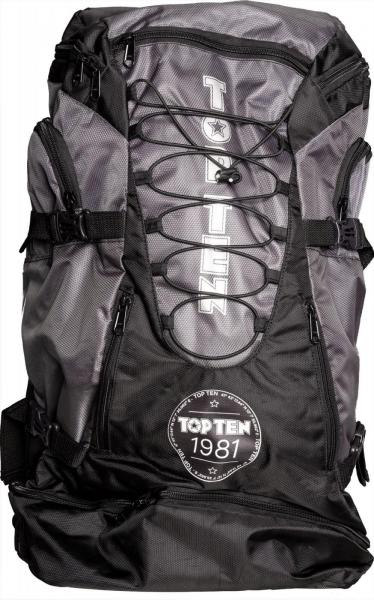 Für alle, die noch viel vorhaben, ist der „Giant“ Rucksack von TOP TEN die erste Wahl. Der Toploader überzeugt mit praktischen Details und entpuppt sich dank seines individuellen Verlängerungssystems als echtes Stauraumwunder. Das große Hauptfach des „Giant“ bietet mit circa 56 cm Länge und 40 cm Breite viel Platz für alles, was du auf deinem Trip brauchst. Im Deckelfach und auf der Front befinden sich kleinere Zip-Taschen, wodurch Ordnung halten unterwegs zum Kinderspiel wird. An den Seiten kannst du locker 1,5 l Flaschen verstauen, während das flexible Zugband spontan Jacke und Mütze sichert.
