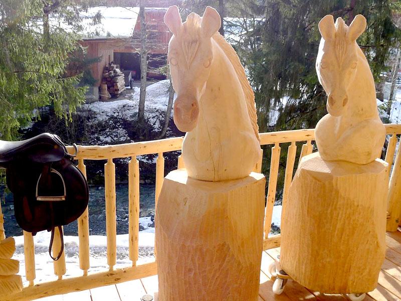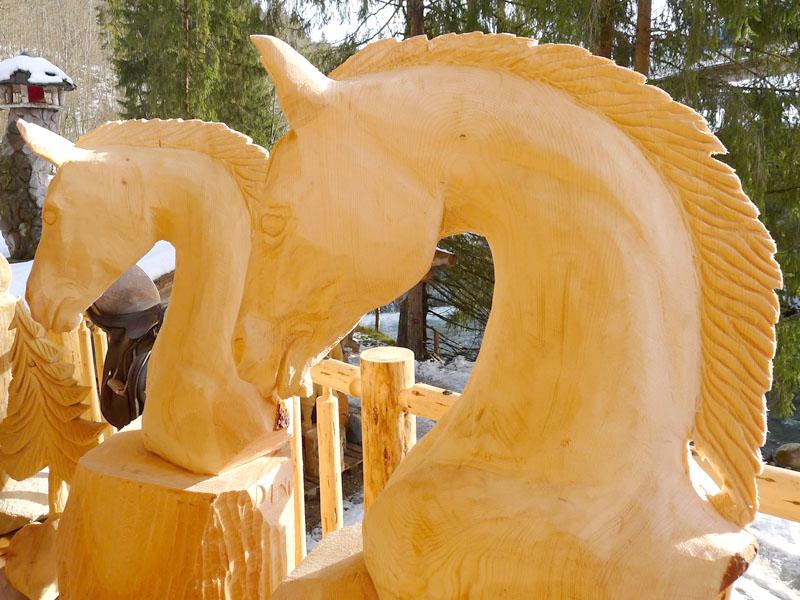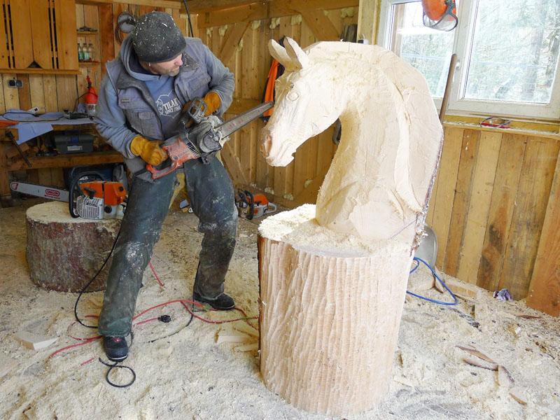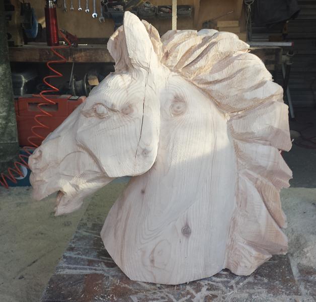 Pferdekopf, Pferd, schnitzen mit der Motorsäge, Holzfigur, Skulptur aus Holz