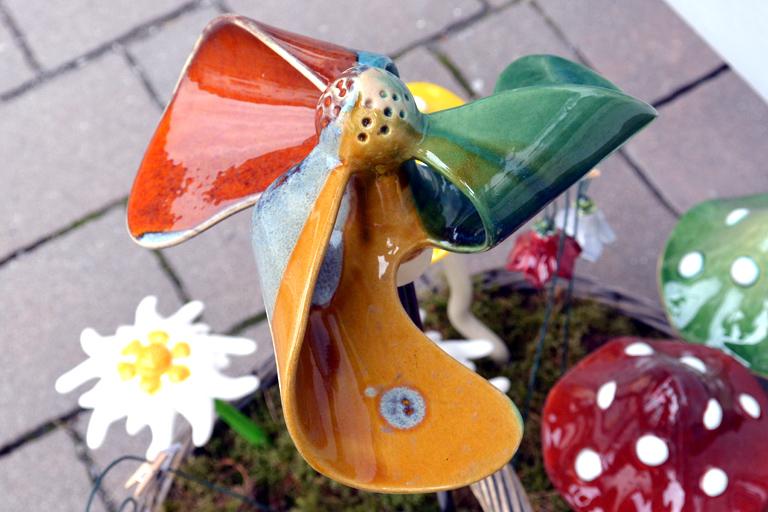 Mo, Di, Do, Fr. 10 bis 17 Uhr, Mi 14.3Keramikwindrad auf Stiel aus EU-Fertigung. Jedes Stück einzigartig. Keines gleicht einem anderen - Handarbeit eben.