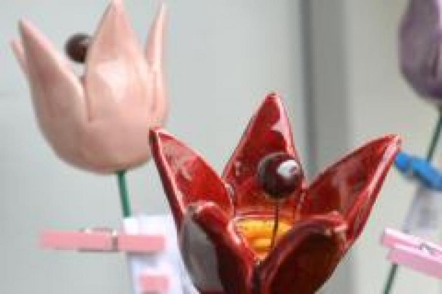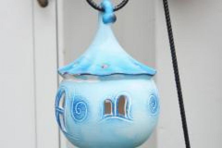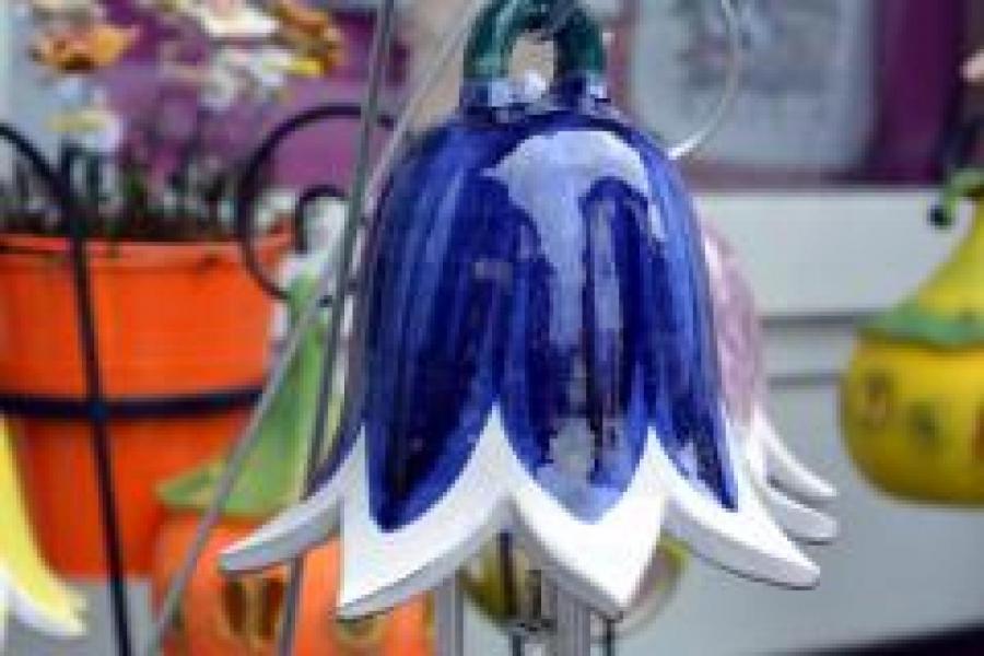 Keramikpilz blau offen auf Keramikstiel. EU-Handarbeit (auch mit Aufschrift erhältlich: Danke, Viel Glück, Alles Gute, etc.)
