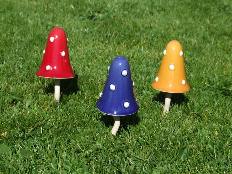 Keramikpilz mit Keramikstiel in verschiedenen Farben aus EU-Handarbeit - deshalb sieht kein Pilz aus wie der andere (alles Unikate)