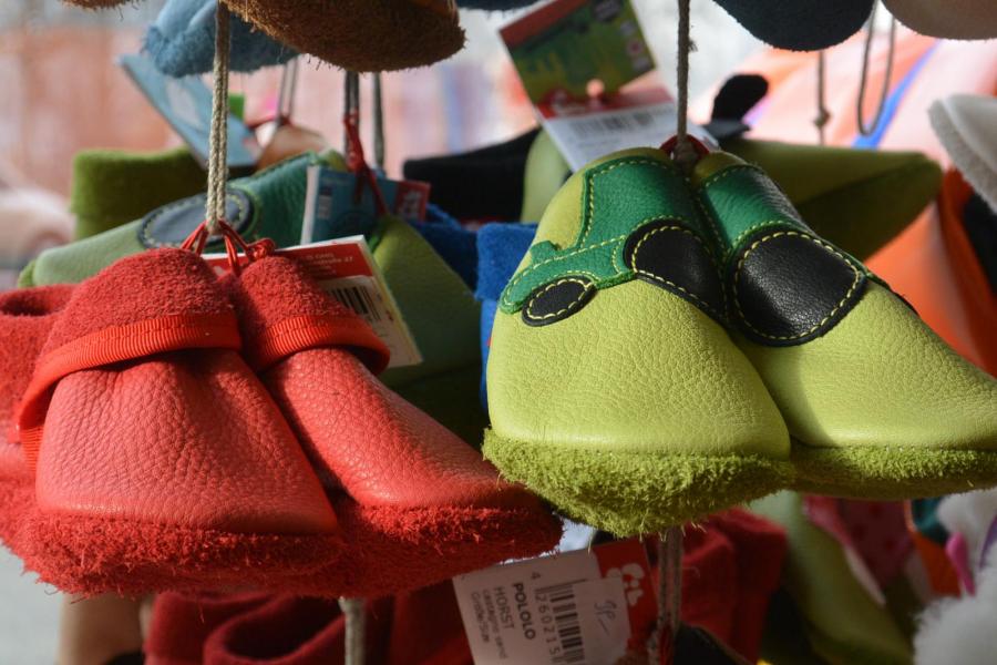 Orangenkinder sind besonders atmungsaktiv und aus pflanzlich gegerbtem Leder, für den Winter auch mit Lammfell gefüttert.