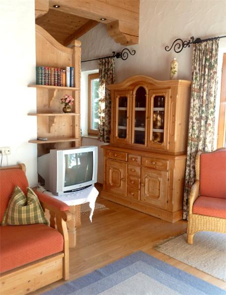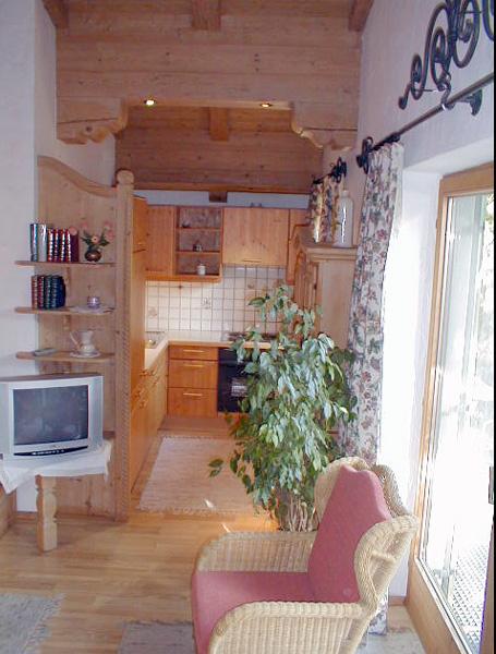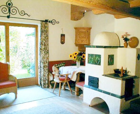Unsere BIO-Wohnung ist sehr exklusiv und wohnlich eingerichtet. Wohn-/Schlaf- und Essbereich, sowie die Küche sind mit hochwertigem Parkettboden ausgelegt. Gemeinsam mit dem Kachelofen liegt eine tolle Atmosphäre in der Luft. Sie können auf der offenen Empore oder auf dem ausziehbaren Doppelbett (hochwertige Federkerncouch) im Wohnbereich schlafen. Badezimmer mit Badewanne und WC.