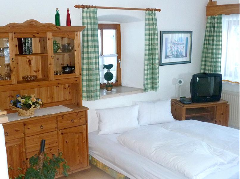 Die Wohnung „Goldmelisse“ verfügt über ein Schlafzimmer mit Doppelbett, sowie einem ausziehbaren Einzelbett. Sollten Sie mit mehreren Personen anreisen, gibt es eine zusätzliche Schlafcouch im Wohnbereich. Großer Vorraum, Badezimmer mit Dusche &WC.