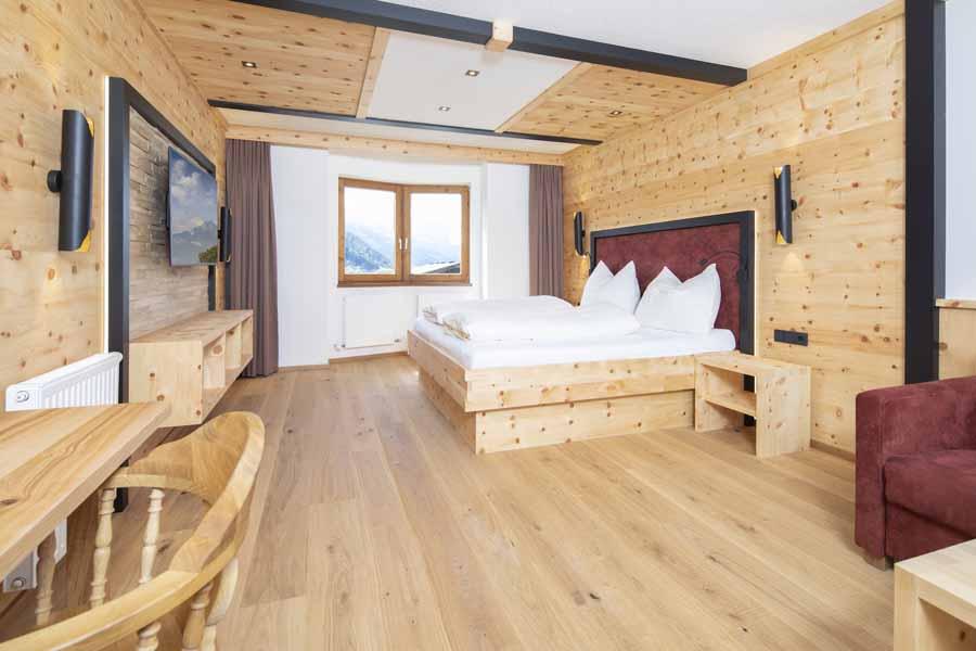 BuchungsanfrageModern gestaltetes Zimmer aus hochwertigem massivem Zirbenholz